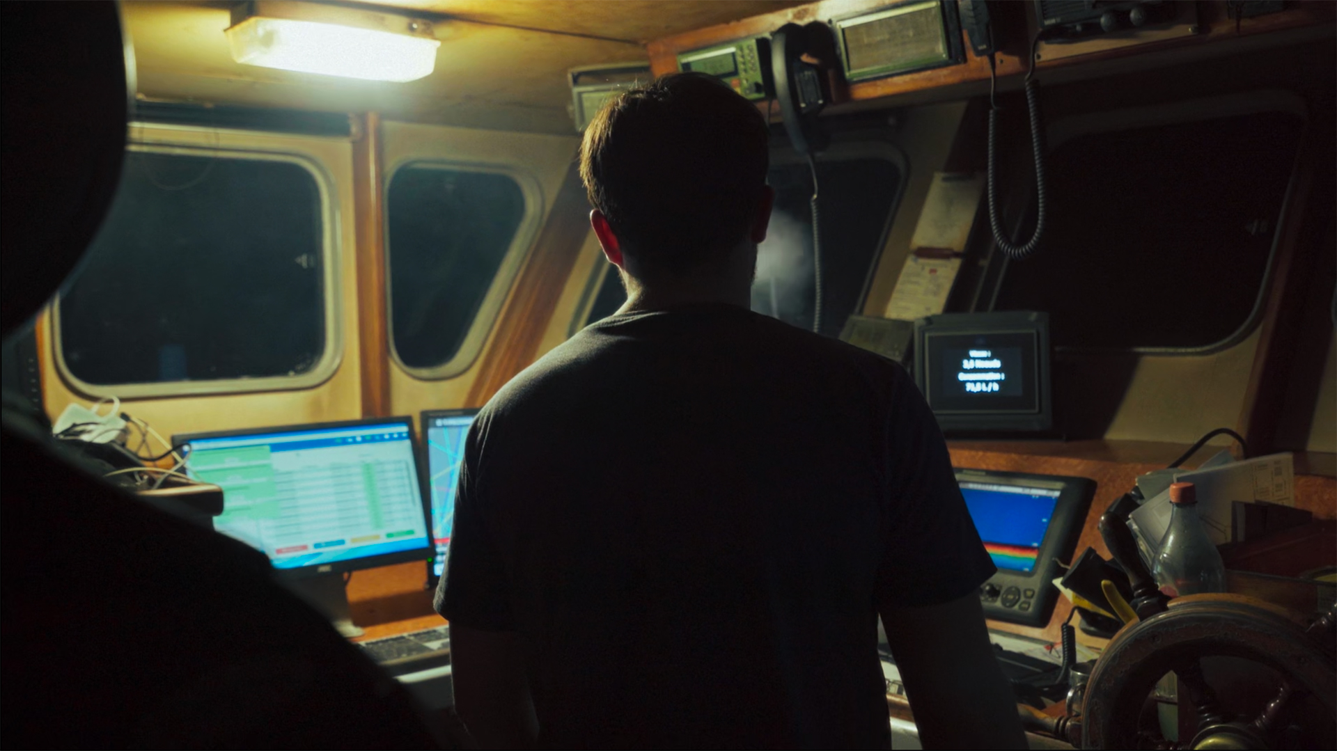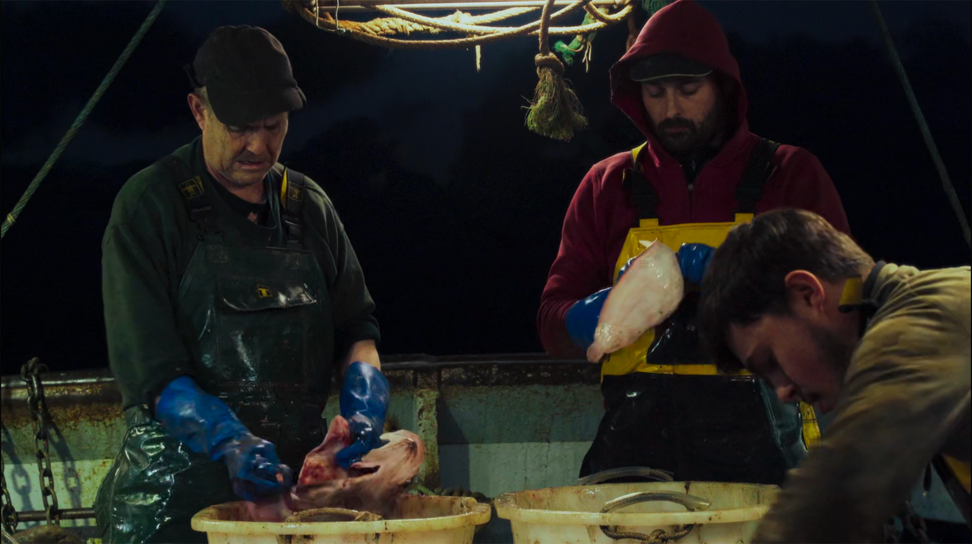 Durant une marée de 15 jours, les machines rythment la vie de quatre marins pêcheurs qui ont répondu à l’appel du large. Ils sont tiraillés entre l’impression de liberté et la brutalité de la production industrielle, entre leur choix de profession et le déterminisme social. Ce huis-clos plonge le spectateur dans un double récit : celui du temps harassant, celui du quart entre silence et confidence. Cette immersion révèle la complexité du rapport au travail et à la mer. Elle évoque les réalités écologique et sociale du métier. Il ne s’agit ni de justifier, ni de condamner, mais d’écouter la parole de ces hommes de mer.